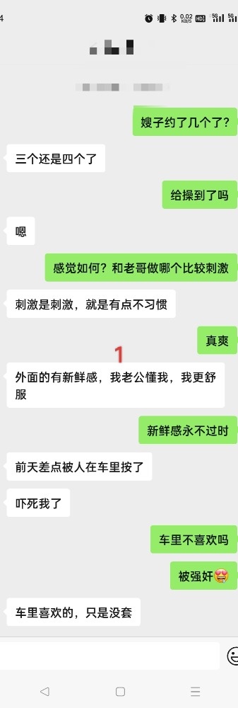 ps:男扮女勿加,会有语音认证,别尝试。照例发几张截图,这个人妻开发到交换了,记得一开始聊天还那么腼腆,现在却在她老公面前给别人狠狠操过,因为都是视频,照片就不上传了,各位淫妻同道自己想象 .